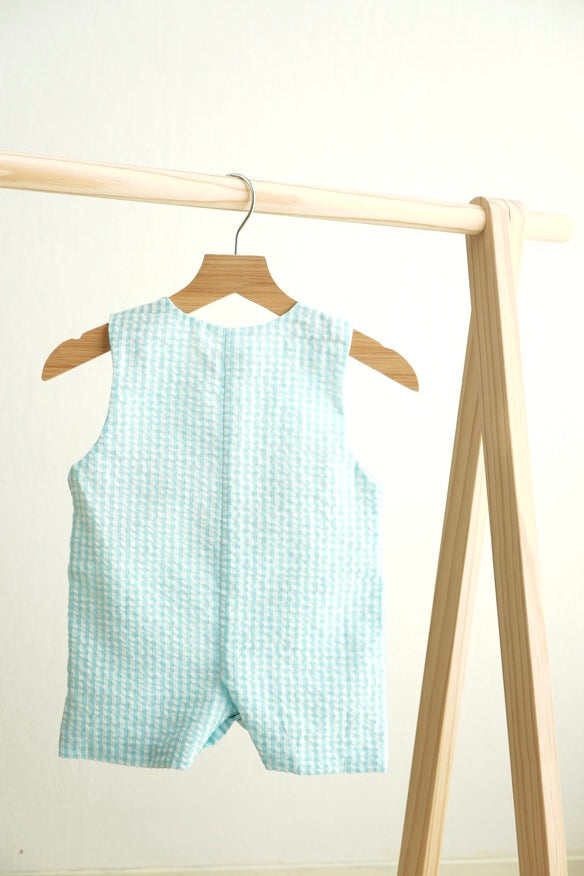 Hop into Easter with this playful blue easter bunny egg jonjon! The cute french knot bunny design and stylish gingham seersucker fabric make this outfit perfect for any spring occasion. Available for boys, this jonjon is sure to be a hit with parents and kids alike!