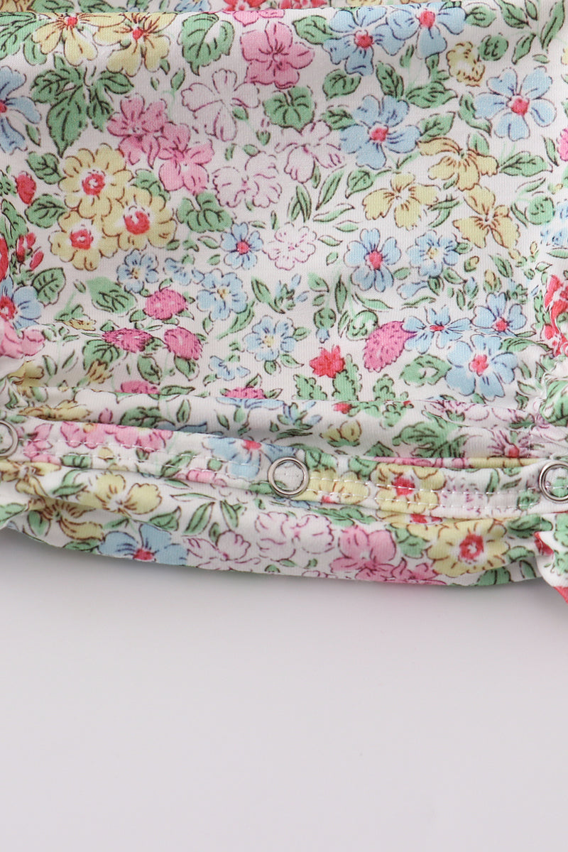 Little ones will love this charming bubble romper featuring delicate floral prints paired with adorable bunny embroidery details. The smocked bodice adds a touch of vintage-inspired elegance while keeping playtime comfortable and easy. Perfect for spring outings, photo sessions, or everyday adventures, this sweet piece combines whimsical style with practical comfort for your little girl.