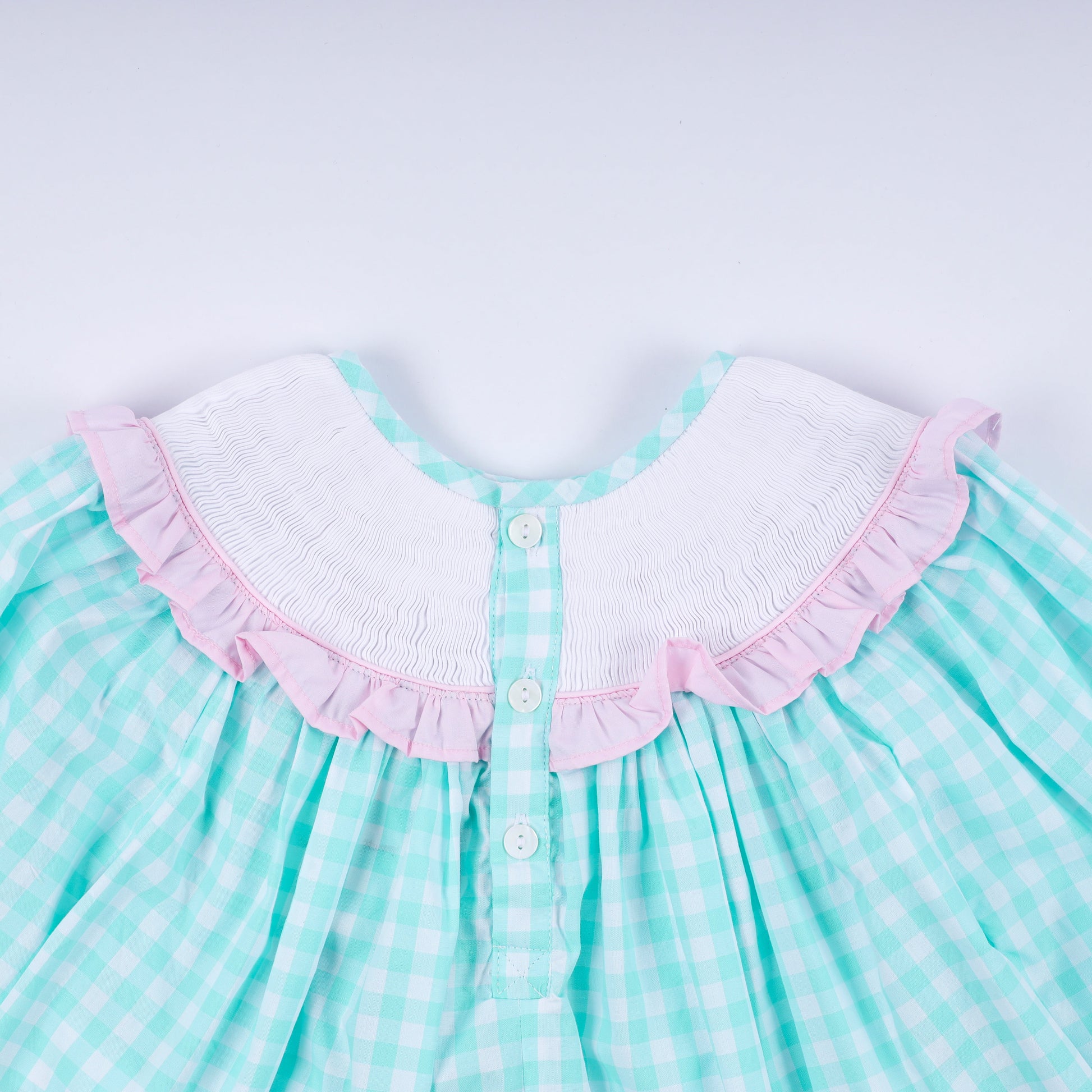 Deck the halls in festive style with this charming mint Christmas nutcracker set! Hand-smocked details add artisanal charm to soft gingham fabric, while delicate ruffle pants bring playful movement to every twirl and dance. Perfect for holiday photos, family gatherings, or spreading seasonal cheer. This whimsical two-piece combines timeless nutcracker imagery with modern comfort, making it an instant favorite for little ones who love the magic of Christmas.
